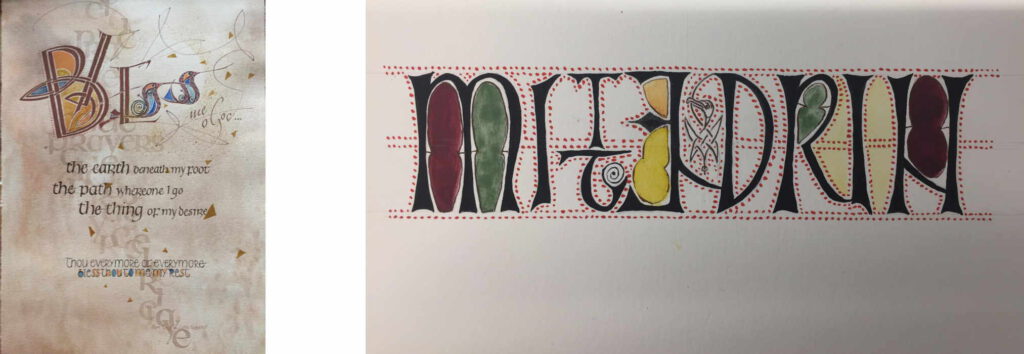 Wir wer­den eine Jugend­stil­schrift mit Blei­stift, Fine­li­ner, Spitz- und Orna­ment­fe­der und zuletzt mit der Band­zug­fe­der üben. Dazu wer­den wir ver­schie­de­ne Wort- bzw. Schreib­übun­gen machen, um schluss­end­lich ein eige­nes Hai­ku (ein klei­nes drei­zei­li­ges Gedicht) ent­ste­hen zu las­sen. Zwi­schen den Schreib­übun­gen wer­den wir immer wie­der klei­ne Gestal­tun­gen ausprobieren.