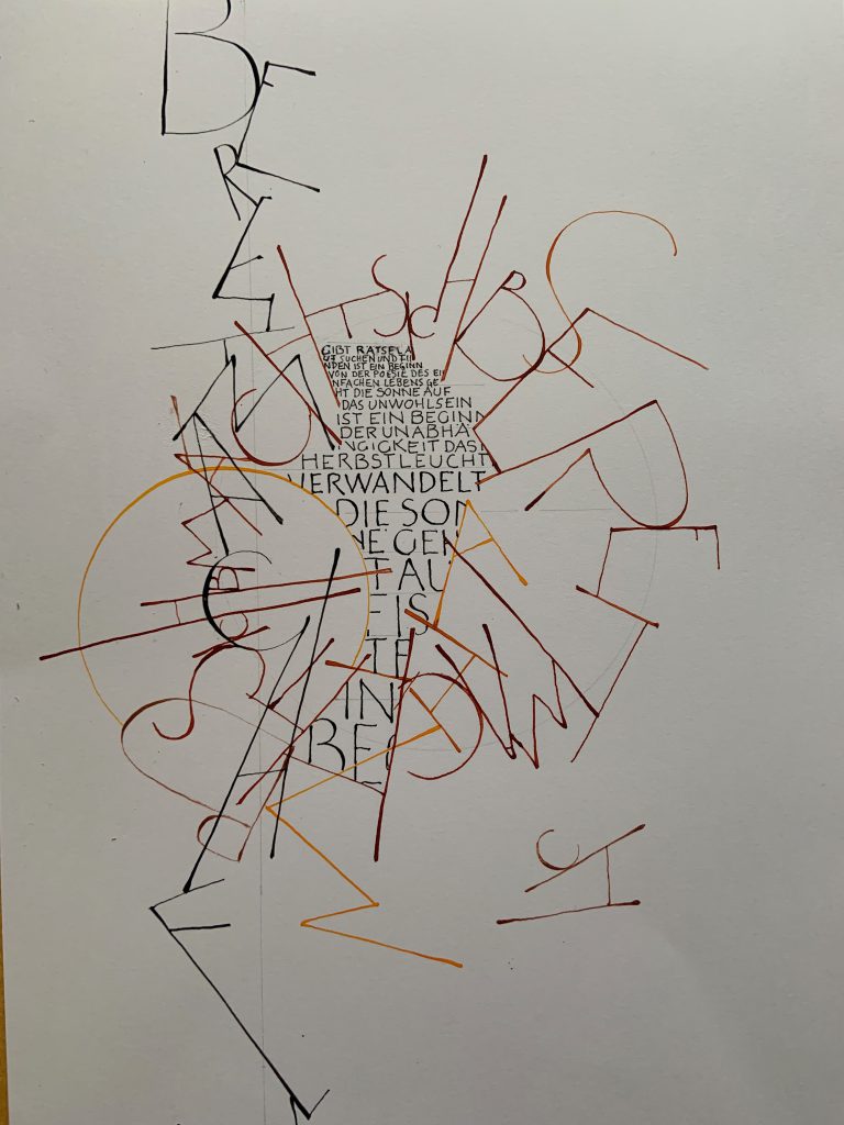 Die Jugendstilschrift im Kreis, für Fortgeschrittene oder diejenigen, die schon am Kurs „Jugendstilschrift trifft Haiku“ teilgenommen haben