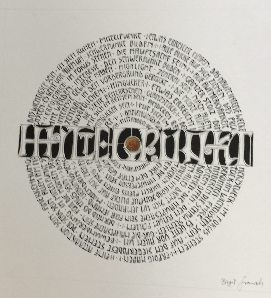 Die Jugend­stil­schrif­ten sind sehr viel­fäl­tig und varia­ti­ons­reich. Am Frei­tag wer­den wir eine Jugend­stil­schrift mit der Band­zug­fe­der üben. Am Sams­tag wer­den wir die­se Schrift im Kreis schrei­ben und gestal­ten. Auch zeich­ne­ri­sche Ele­men­te wer­den mit ein­flies­sen. Das Schrei­ben im Kreis ist eine Her­aus­for­de­rung und bedarf genau­er Regeln, die ein­ge­hal­ten wer­den müs­sen, damit das Gesamt­bild stimmt.